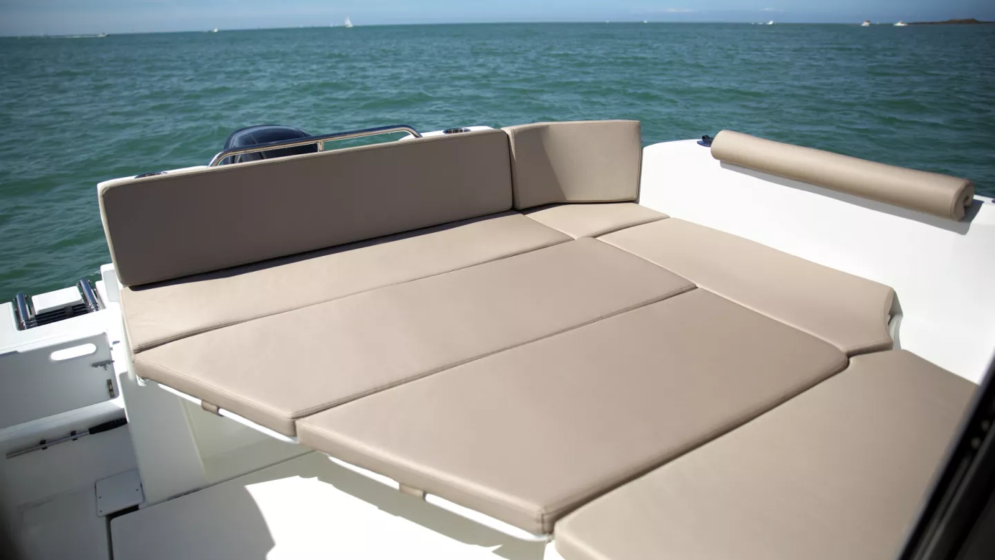 Cleverly rotating, the large port bench in the helm station offers different positions to the passengers: facing the sea or facing the saloon table. At night time, it can be lowered to convert into an extra-large double berth.