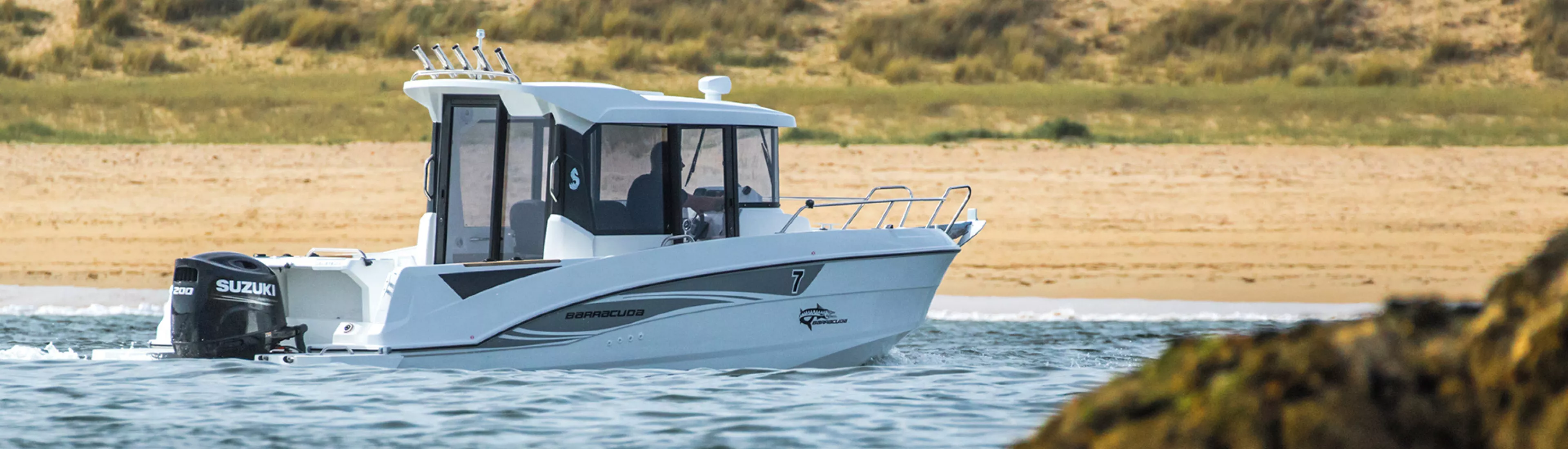 Die Barracuda 7 ist ein kleiner, feiner Allrounder – ob zum Sportfischen oder für Ausflüge – und ist auf allen Gewässern eine gute Begleiterin. Das Sportboot hat eine Maximalgeschwindigkeit von 35 Knoten, ist seetüchtig und einfach im Handling und fährt sicher von einem Fischgrund zum nächsten.