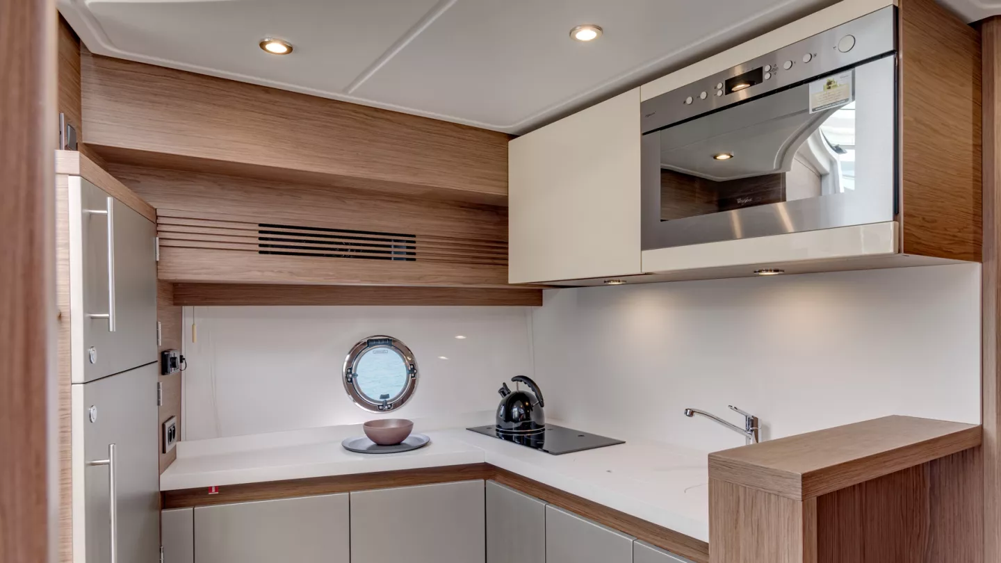 Die Air Step® 2 Generation ist ein großer Schritt nach vorne. Die Technologie kann jetzt mit der IPS-Motorisierung kombiniert werden. Die Luftzufuhr unter den Rumpf wurde um das Dreifache erhöht, was die Performance steigert und sich sehr positiv auf die Sicherheit und den Fahrkomfort auswirkt. Gleichzeitig sinkt der Treibstoffverbrauch, das Boot beschleunigt schneller und die erzielbare Höchstgeschwindigkeit steigt. Die neue Generation dieser bewährten und patentierten Technologie bringt ein herausragendes Fahrverhalten, sanftes Einsetzen in die Wellen, eine gleichförmige Beschleunigung und leichtfüßiges Kurvenverhalten. Der Luftkisseneffekt im Heckbereich sorgt für bemerkenswerten Komfort.