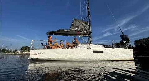und, am wichtigsten, einer richtigen Bordtoilette." Natürlich entschieden sie sich für die First 27 SE. „Die vielen Geschichten, Tipps und Erfahrungen aus der Seascape-Community haben sehr geholfen", fügt Milan hinzu. Ein niederländischer Besitzer bot ihm sogar eine Probefahrt an. Nur zwei Wochen später segelte Milan zum ersten Mal damit — damals noch als Seascape 27 bezeichnet. „Ich war sofort überwältigt, wie leicht und agil sie sich anfühlte! Und der Spaßfaktor! Sie reagierte wie ein Dinghi — aber mit Kraft und Stabilität. So etwas wie die First 27 SE hatte ich noch nie erlebt!