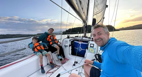 Papa, warum segeln wir heute nicht? Das Wetter ist doch so schön!" Das, sagt Milan, war ein Wendepunkt. „Warum gibt es kein Boot, das wir einfach hierher bringen, aufriggen und segeln könnten?" fragte sich Milan. „Ein Boot, das hervorragend segelt, aber auch erlaubt, mit meinem Kind an Bord zu schlafen. Wenn es doch nur so etwas gäbe…