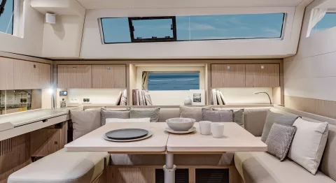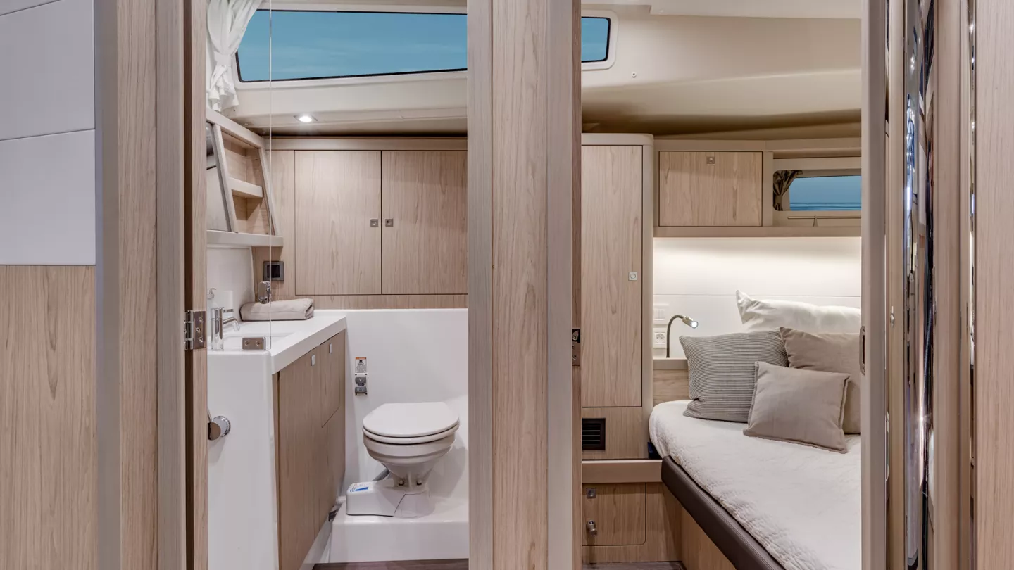 Durch ihren charakteristischen Kiel kommt die Sense 51 auf eine flotte Fahrgeschwindigkeit und wiegt dabei die Crew in absoluter Sicherheit. Ihr perfektes Gleichgewicht bei gesetzten Segeln und ihre hervorragende Manövrierfähigkeit bei reduzierter Besatzung sind Synonym für Leistung und verleihen ihr einen auf einer Einrumpfyacht unerreichten Segelkomfort.