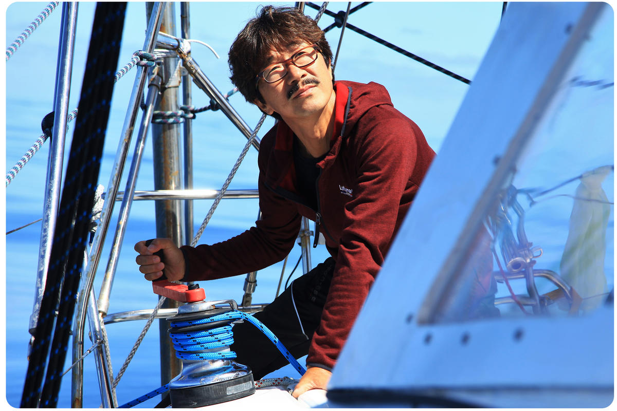 In 2014, he gave up his comfortable life and embarked on an around-the-world solo voyage on his boat Arapani, a Beneteau Oceanis 423. He challenged himself to make no landfall along the way, and used no power en route during his 210-day-long trip. He returned to the starting point of Waemokhang (a small port on the west coast of Korea) as a hero with his dreams fulfilled, having sailed around 41,900 kilometers in total.