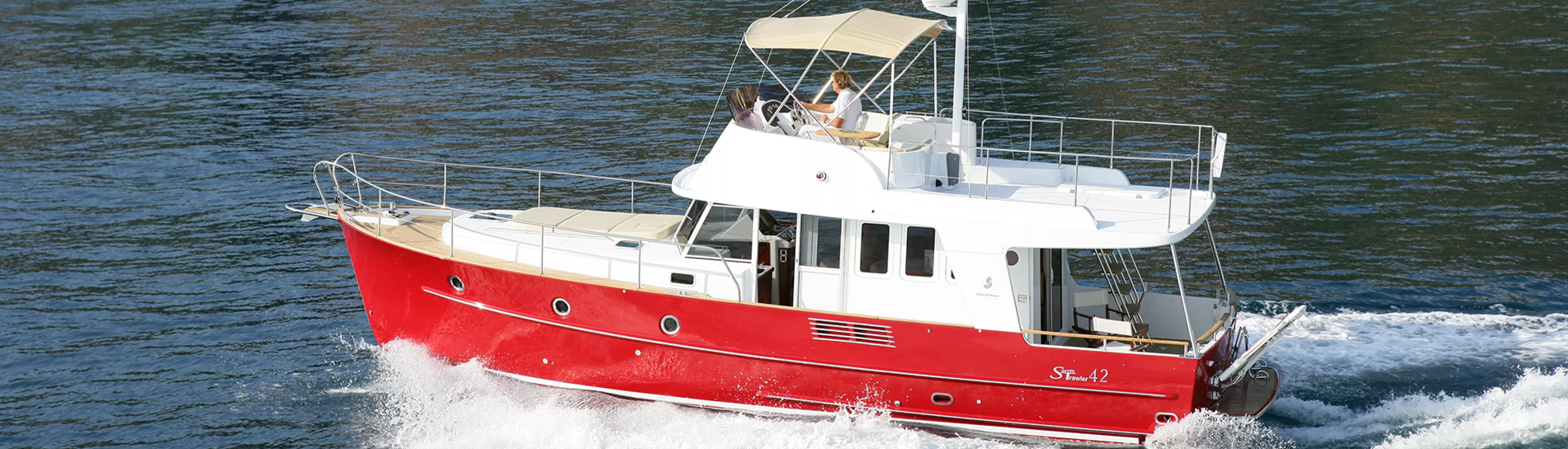 With a range of more than 300 miles and a cruising speed of 18 knots, the ST 42 will allow you to enjoy the most inaccessible stops. Impressive in size, the fly bridge with its convertible U-shaped saloon makes it possible to accommodate 6 people comfortably. A specialist in successful anchorage, with a space dedicated to the dinghy and easy access to the water. Access to the wheelhouse via the gangways, as well as access to the saloon via the cockpit makes moving around comfortable and convenient. Two comfortable and spacious double cabins can accommodate 4 people for long cruises. Enjoy your cruises in complete peace: facilitated moorings, access to the secure sunbathing platform and fly, plenty of storage space.