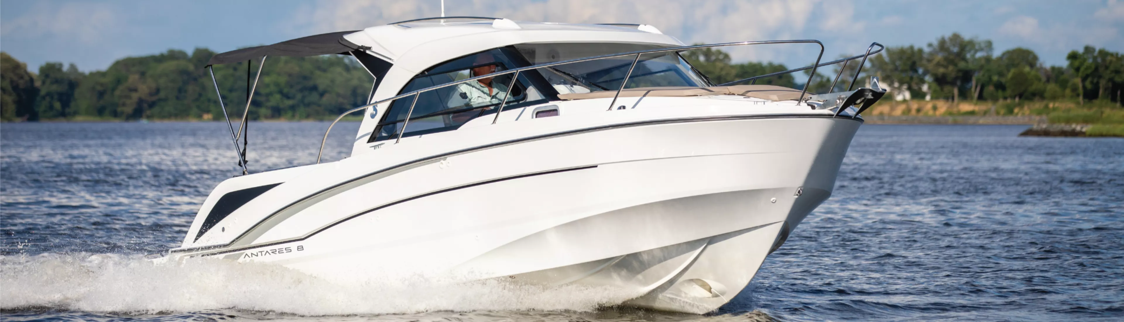 Agile, powerful, and comfortable, the Antares 8 oozes character. The ideal boat for exploring new shores, she is wonderful for taking a break for a few days, confident that you are completely safe.