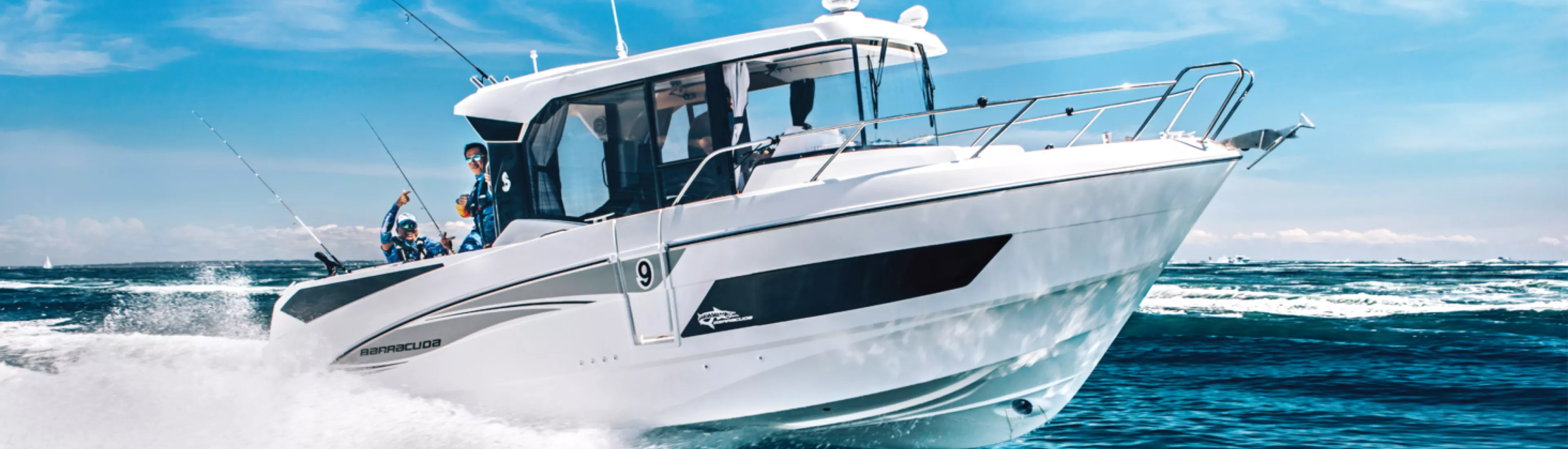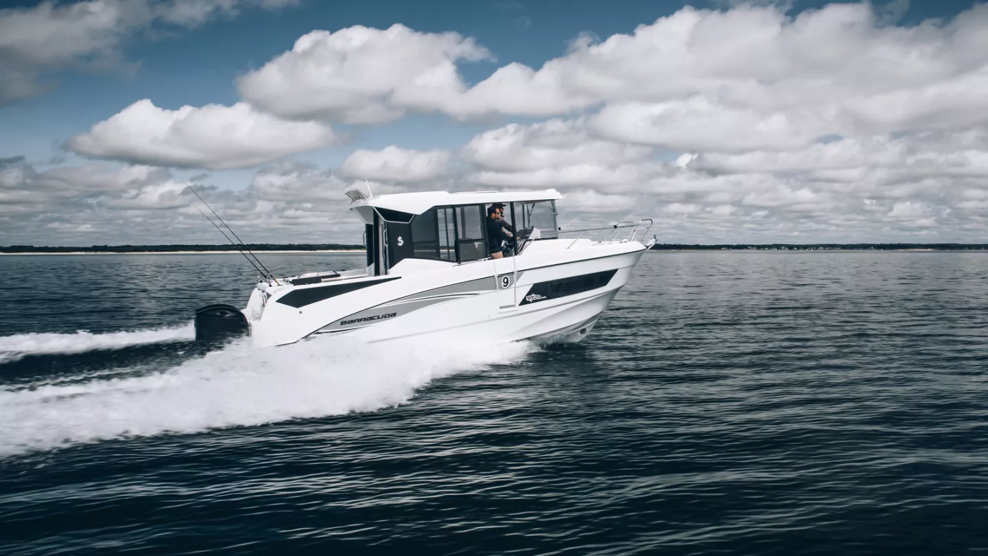 With its 4-seat forward lounge, large walkways, and protective pulpits, the Barracuda 9 delivers both safety and comfort. Her panelled freeboards promise comfort during fishing trips, while a starboard side access gate makes drawing alongside and climbing aboard easier. With the latest Airstep® hull, the Barracuda 9 is as comfortable to live aboard as it is easy to handle. Powered by two engines delivering up to 500 HP, two fuel tanks are available (106 or 158 US Gallon). You can confidently head out to sea with up to 10 people on board (Category B6/C10).