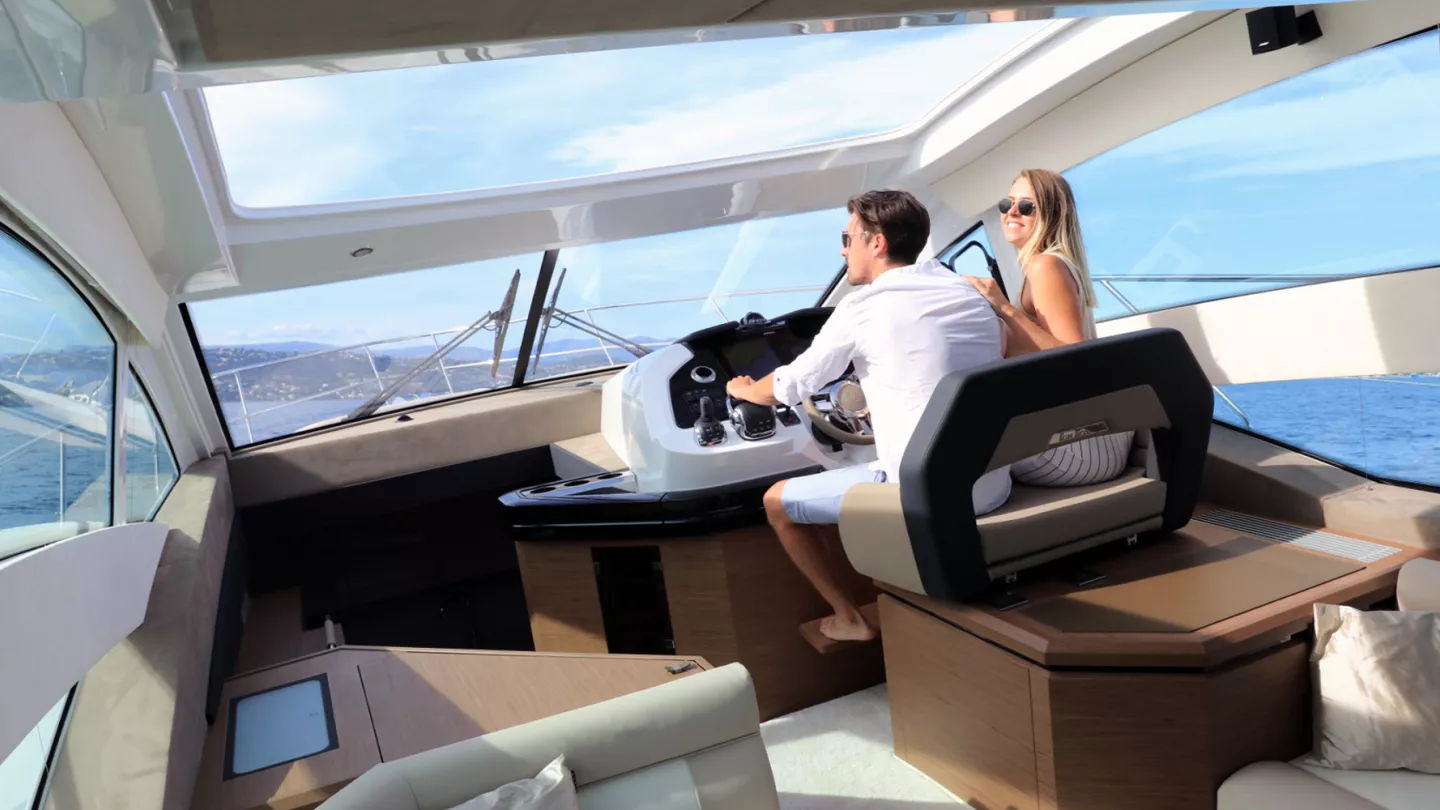 Check the gauges and manage the air-conditioning, navigation lights, lighting, and hi-fi system from the driving console or a wi-fi connected tablet: a quick tap or slide of the cursor and the Gran Turismo 50 obeys your every command.”