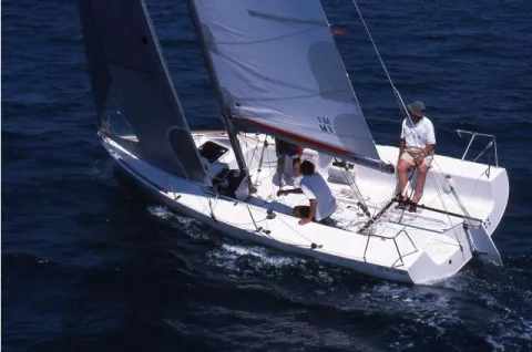 The First Class 7.5 stemmed from the close collaboration between the Fédération Française de Voile [French Sailing Federation] and Beneteau shipbuilding who knew how to combine their expertise in the field of high-performance sailing boats intended for training young sailors.  With its particularly sound performance, the First Class 7.5, sturdy, transportable and easy to maintain, constitutes an excellent springboard for sailing clubs and up-and-comers.  Designed by Groupe Finot, this modern and dynamic sports monotype was designed for crewed regattas on a level playing field: learning and improvement, high-level match racing or club racing in fleets.  Through its performance and the sensations that it evokes, it is also aimed at those who want to enjoy practising sport sailing out of competition.