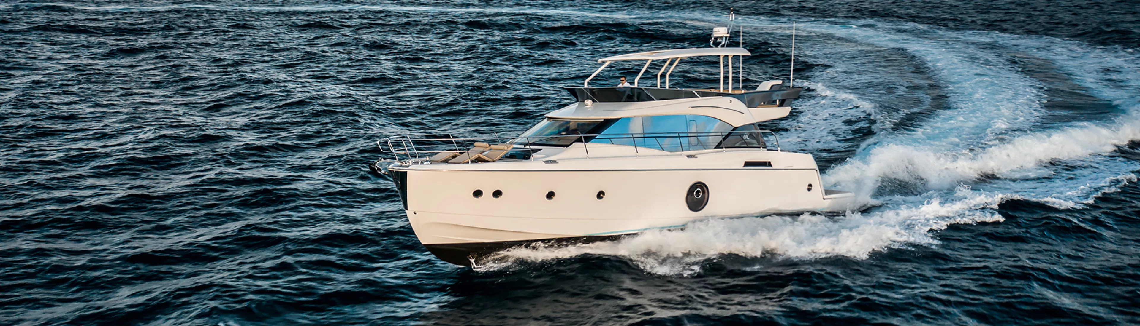 Commended for being the most spacious in its category, the Monte Carlo 6 Flybridge is designed to be the primary living space on board. Remarkably equipped, its layout is reminiscent of a huge terrace with an integrated galley. Its large lounge seats ten people comfortably. They can enjoy the large sun-loungers or sit in the shade of its T-top.