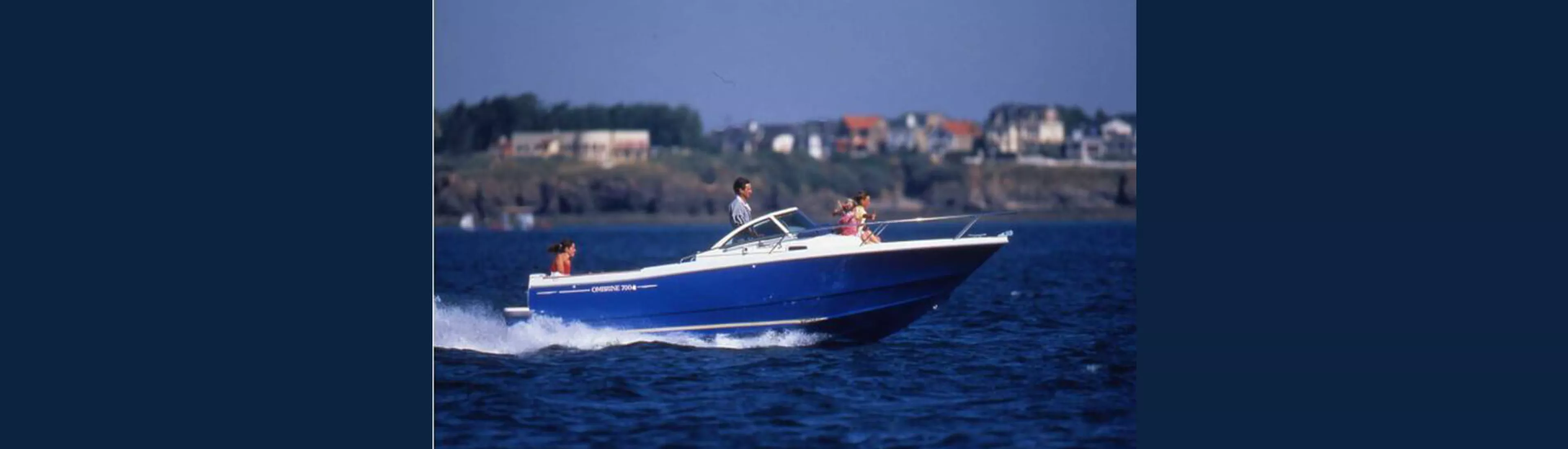 Elegant, powerful and safe, it offers you the best of  both worlds: performance and ease of use of the Z drive motor, safe and economical diesel. With its semi-inverted  sheer deck and powerful bow for perfectly deflecting sea-spray, the Ombrine 700 W. A. is truly a boat for all the pleasures of the sea.