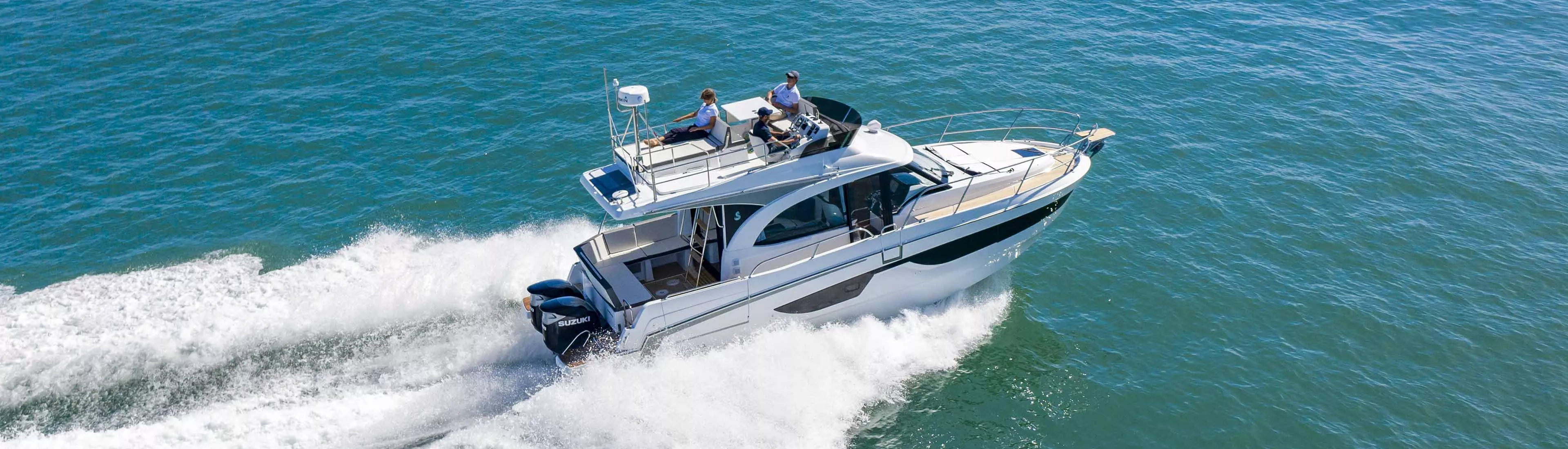 Con el flybridge perfectamente integrado a su silueta, el Antares 11 FLY permite disfrutar plenamente de los placeres de la navegación en el exterior.