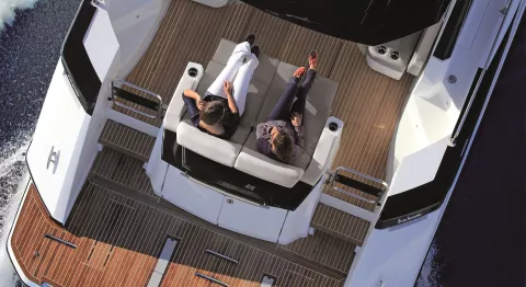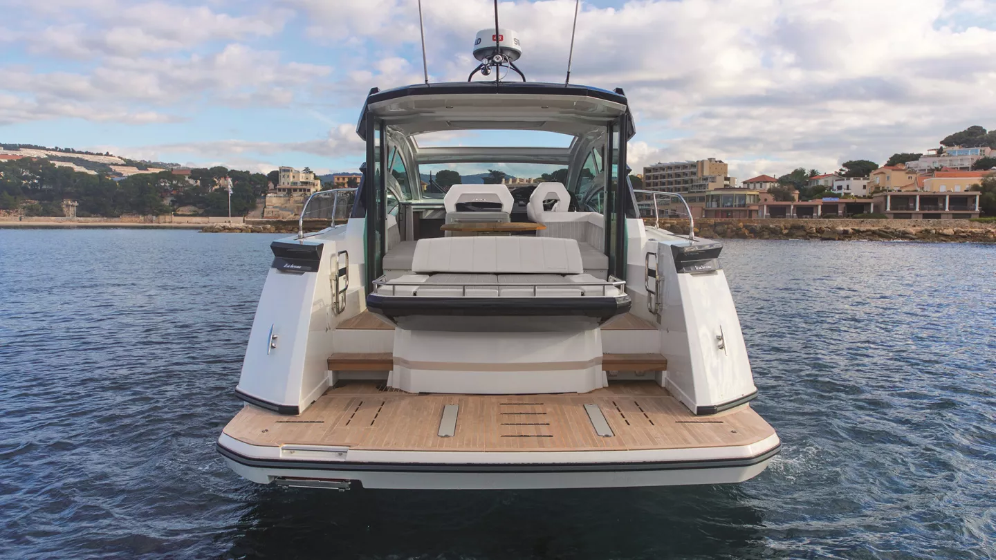 Sport-Cruiser de la última generación Gran Turismo, el GT 46 disfruta de la tecnología Air Step© 2. Resueltamente deportivo y muy seguro, este barco con estilo y armonioso es rico en sus adaptaciones y ofrece numerosas posibilidades de personalización.