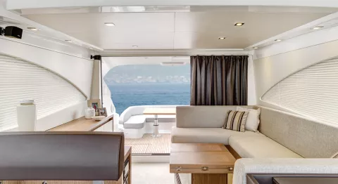 Sport-cruiser con flybridge, el Gran Turismo 49 Fly ofrece un placer de pilotaje incomparable, tanto en el interior como al aire libre. Su silueta demuestra el ADN de la gama: un barco resueltamente deportivo. Acogedor, invita a recibir a bordo a la familia y los amigos, en un ambiente cuidado y luminoso.