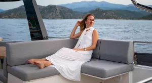 Suba a bordo y descubra unos interiores diseñados para disfrutar al máximo de la vida en el mar. Disponibles en distribuciones de tres o cuatro camarotes, todos ellos ofrecen un máximo confort con cuartos de baño refinados, accesorios de alta gama y elegantes acabados lacados. Los detalles inteligentes, como los cierres de las puertas de los armarios, el mayor espacio de almacenamiento y la mesa de centro convertible con cojín extraíble, crean un espacio tan versátil como lujoso. Todo ha sido diseñado para que se sienta como en casa, o incluso mejor.
