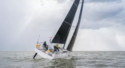 La course, un parcours de 165 milles au près et au portant, ne devait pas, en théorie, avantager le 36 SE. Pourtant, dès le départ, il a affiché des vitesses VMG remarquables et s’est finalement classé 3ᵉ dans une flotte extrêmement compétitive de 29 bateaux du groupe ORC Classe B.