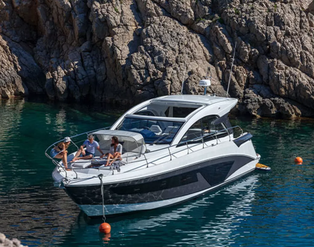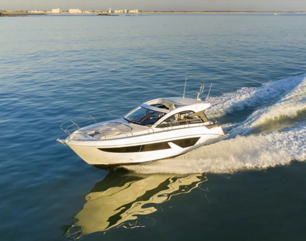 Le hard-top profilé du Gran Turismo 36 donne le ton d’un express-cruiser sportif et élégant. Sur une carène équipée de zipwakes pour la stabilité des virages, le plan de pont propose des espaces dédiés à chaque moment de vie à bord. Le large bain de soleil encastré à la pointe avant crée un espace inédit. Avec son hard-top agrémenté d’un toit ouvrant, l’arrière du bateau combine protection et ouverture. Le spacieux salon de cockpit réunit autour de la table jusqu’à 8 convives. A l’arrière, un large bain de soleil regarde la mer avec, en vis à vis, la cuisine extérieure. Au poste de navigation, deux banquettes-double face à la mer permettent à 4 personnes de partager les sensations du pilote.