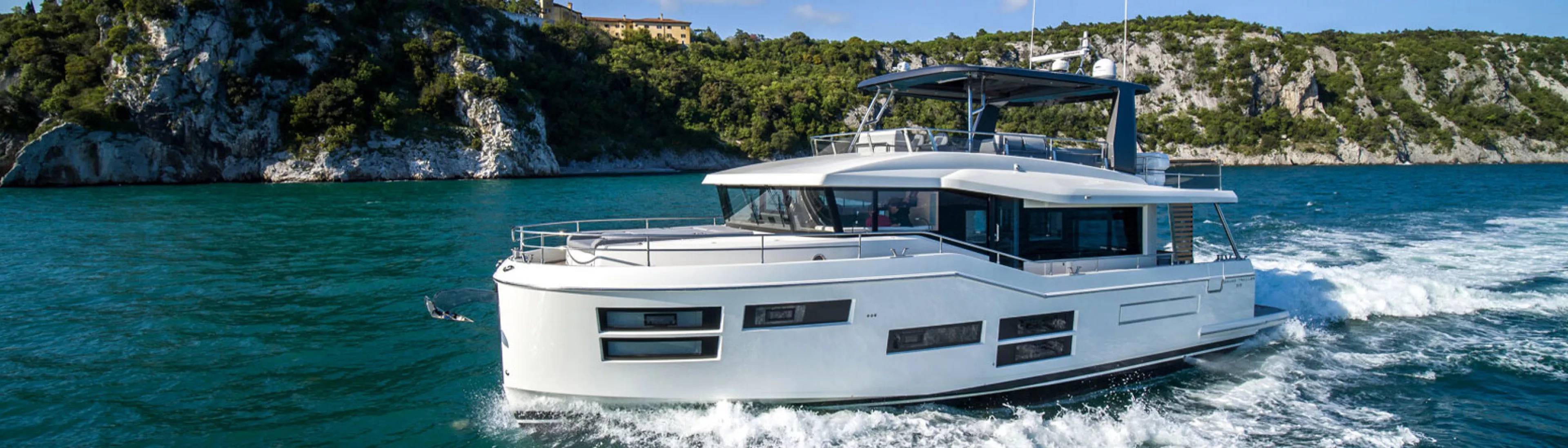 Surprenant par ses incroyables volumes intérieurs, équivalents à ceux rencontrés à bord d’unités de tailles supérieures, et ingénieusement agencés, le Grand Trawler 62 permet aussi d’accueillir un équipage dans des conditions favorables. Boiseries au choix (noyer ou chêne), cuirs et textiles sophistiqués, le design intérieur a été étudié dans le moindre détail par Nauta Design. Les espaces sont spacieux et bien délimités, la cuisine peut être totalement séparée. La suite du propriétaire, au centre du navire, exploite habilement le maître-bau et donne l’impression d’être dans une véritable suite d’hôtel.