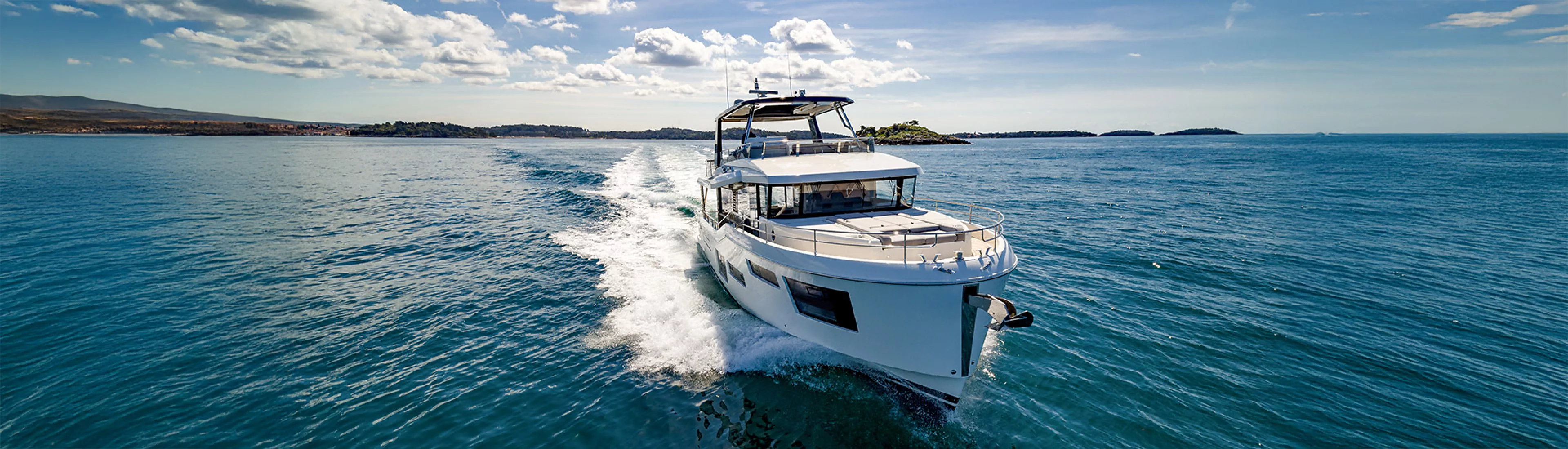 Des équipements optionnels tels que le flybridge modulable ou le barbecue texan transforment chaque instant passé en extérieur en un moment d’exception, au mouillage comme en navigation.