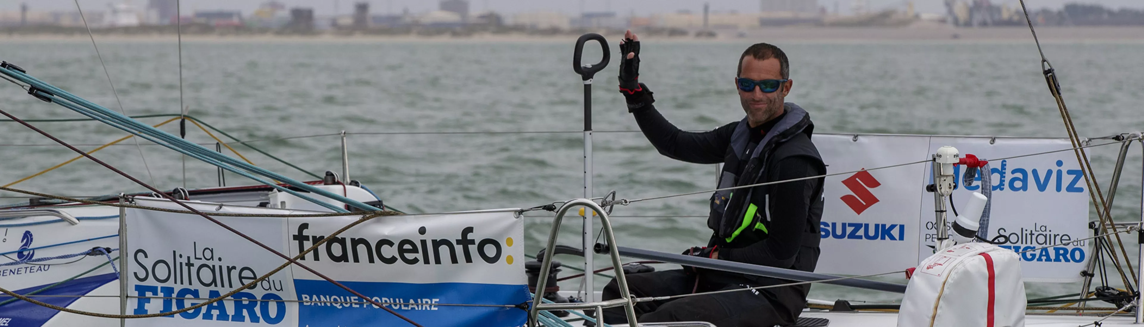 Arrivée du vainqueur de la seconde étape de la Solitaire du Figaro à Dunquerke mardi après-midi.