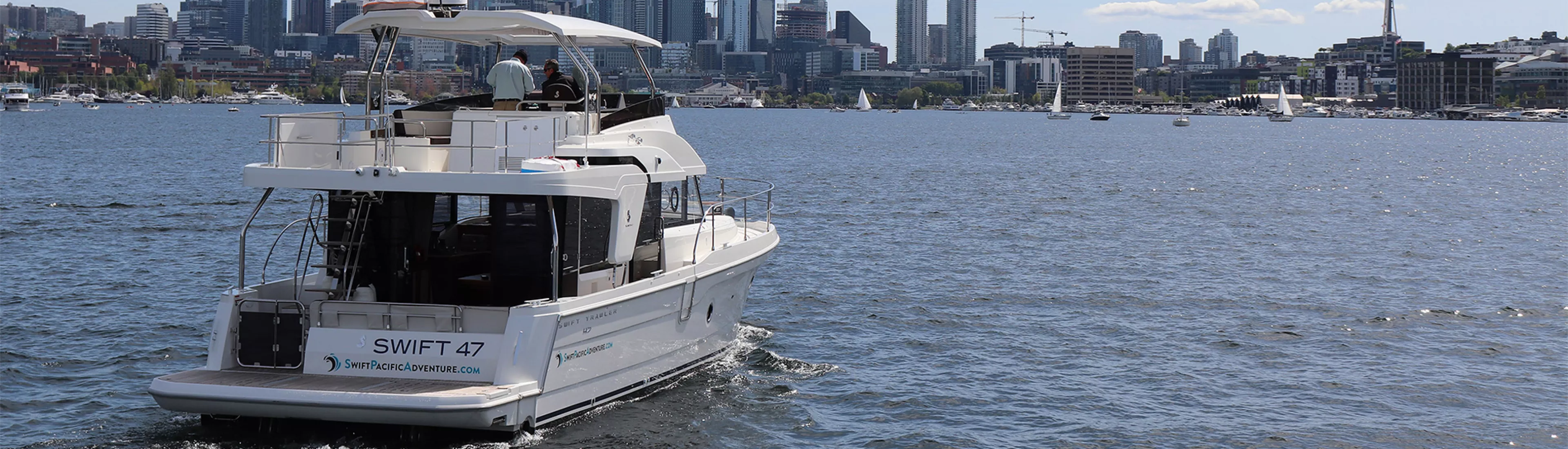 " The Swift Pacific Adventure" aux Etats-Unis. Spécialement imaginé pour le Swift Trawler 47, organisé par BENETEAU USA et les concessionnaires de la côte Ouest, "The Swift Pacific Adventure" est un parcours côtier, ponctué d'escales qui relie Seattle à San Diego en Californie.