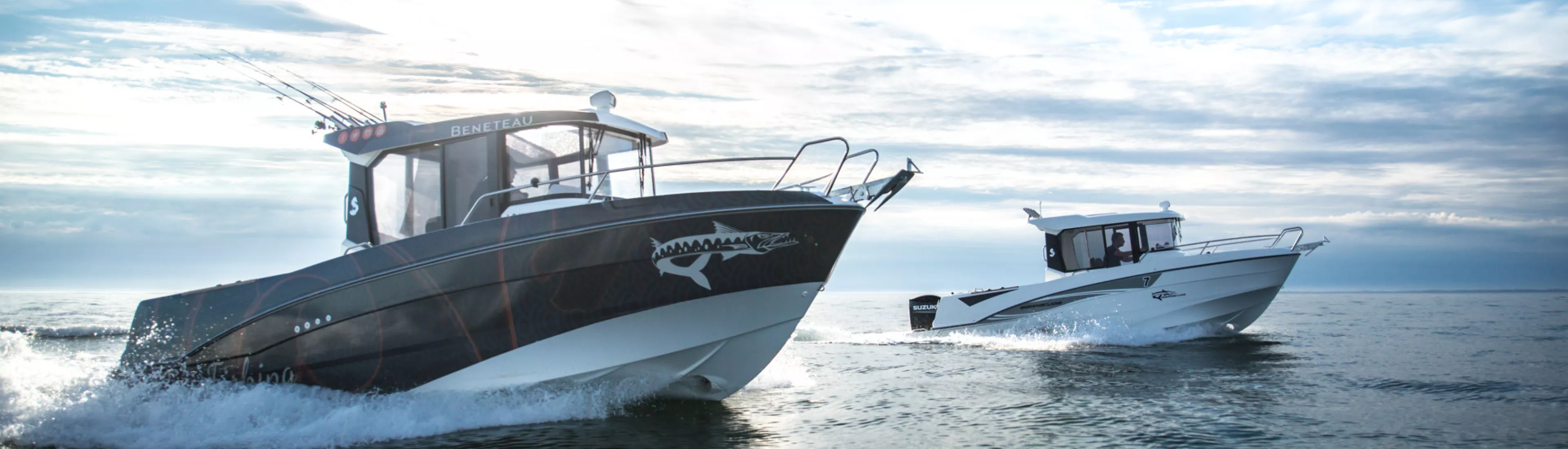 *Offre commerciale disponible jusqu'a épuisement des stocks auprès du réseau de concessionnaires BENETEAU participant à l'opération. Cette offre commerciale comprend : le bateau équipé d'un moteur Suzuki, d'un pack électronique, d'un kit mouillage, d'un armement de sécurité et de la finition fishing Barracuda Tour. Ce prix ne comprend pas les frais de préparation et de transport du bateau.