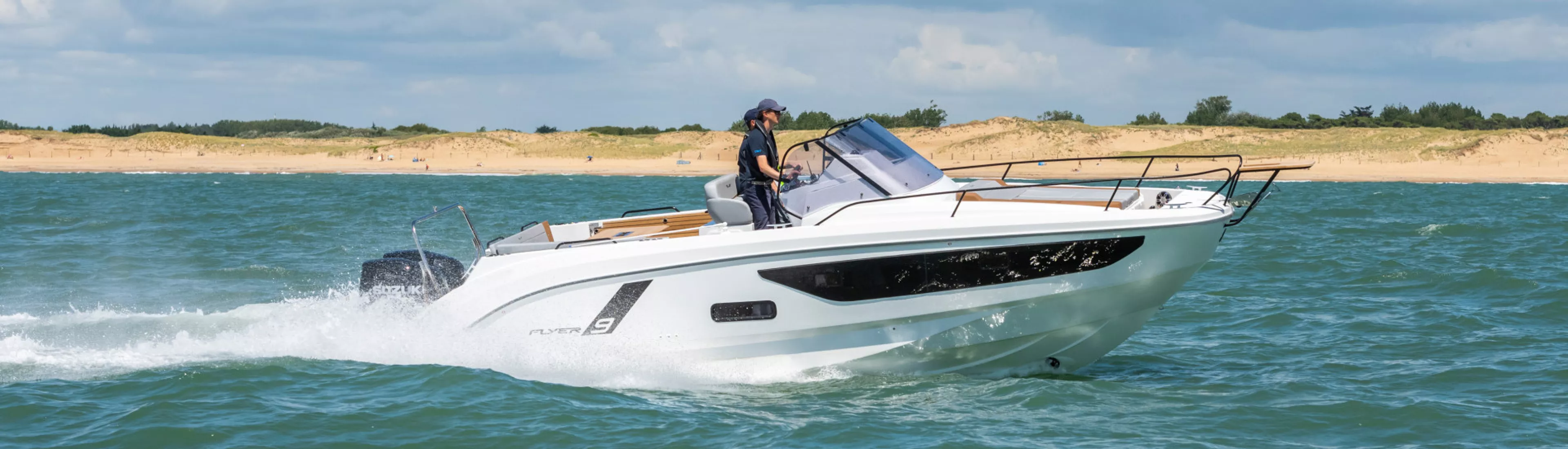Classé dans la catégorie day boat, nous avons essayé le Flyer 9 qui permet à tous les amateurs de loisirs nautiques de profiter pleinement d’une sortie en mer, et d’allier pleinement plaisirs et navigation.