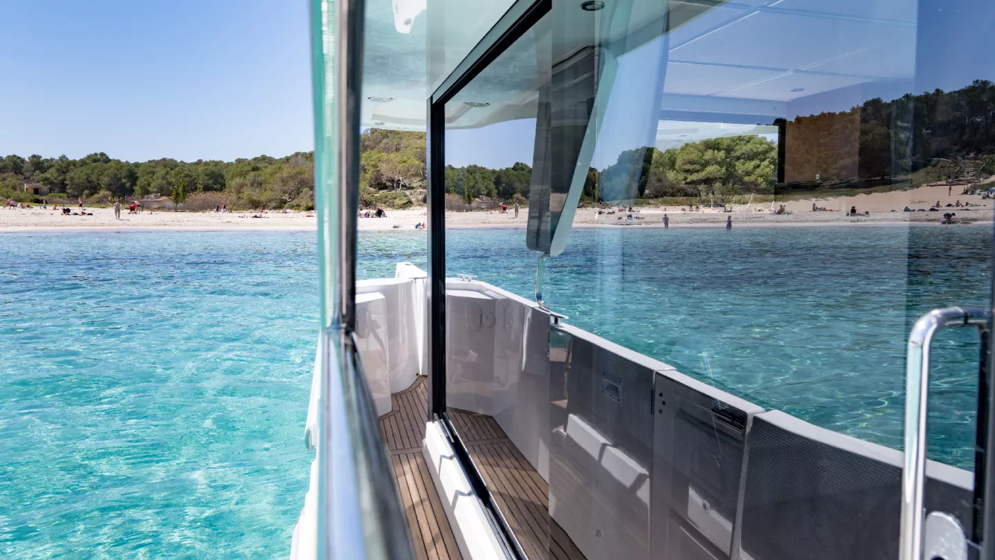 Les mains courantes omniprésentes, les balcons hauts et le large passavant tribord bien protégé maximisent la sécurité des déplacements à bord. Unique sur ce type de bateau, la vision circulaire à 360° au poste de pilotage confère à la navigation autant de sérénité que de plaisir.