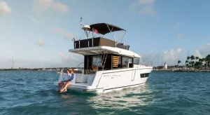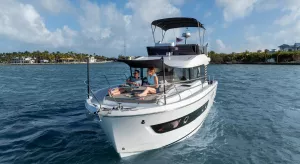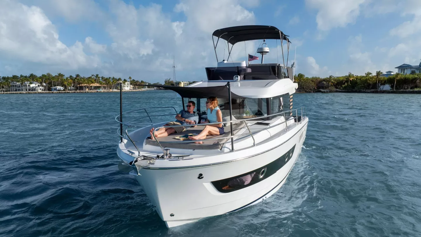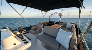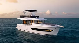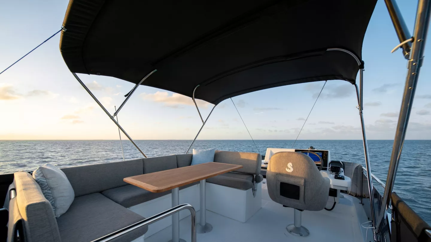 La convivialité est au cœur de la conception de ce Trawler nouvelle génération avec une cuisine en U complémentaire et une banquette, qui renforcent la sensation d'espace. Le tout est complété par de nombreuses possibilités de rangement et un grand réfrigérateur-congélateur disponible en option. La banquette se transforme rapidement en lit double avec rideau de séparation préservant l'intimité.