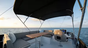 La cuisine et la salle de bain sont équipées de plans de travail en Corian en version standard. Et pour conjuguer décoration et confort, un nouveau pack Luxe est proposé pour renforcer le bien-être à bord.