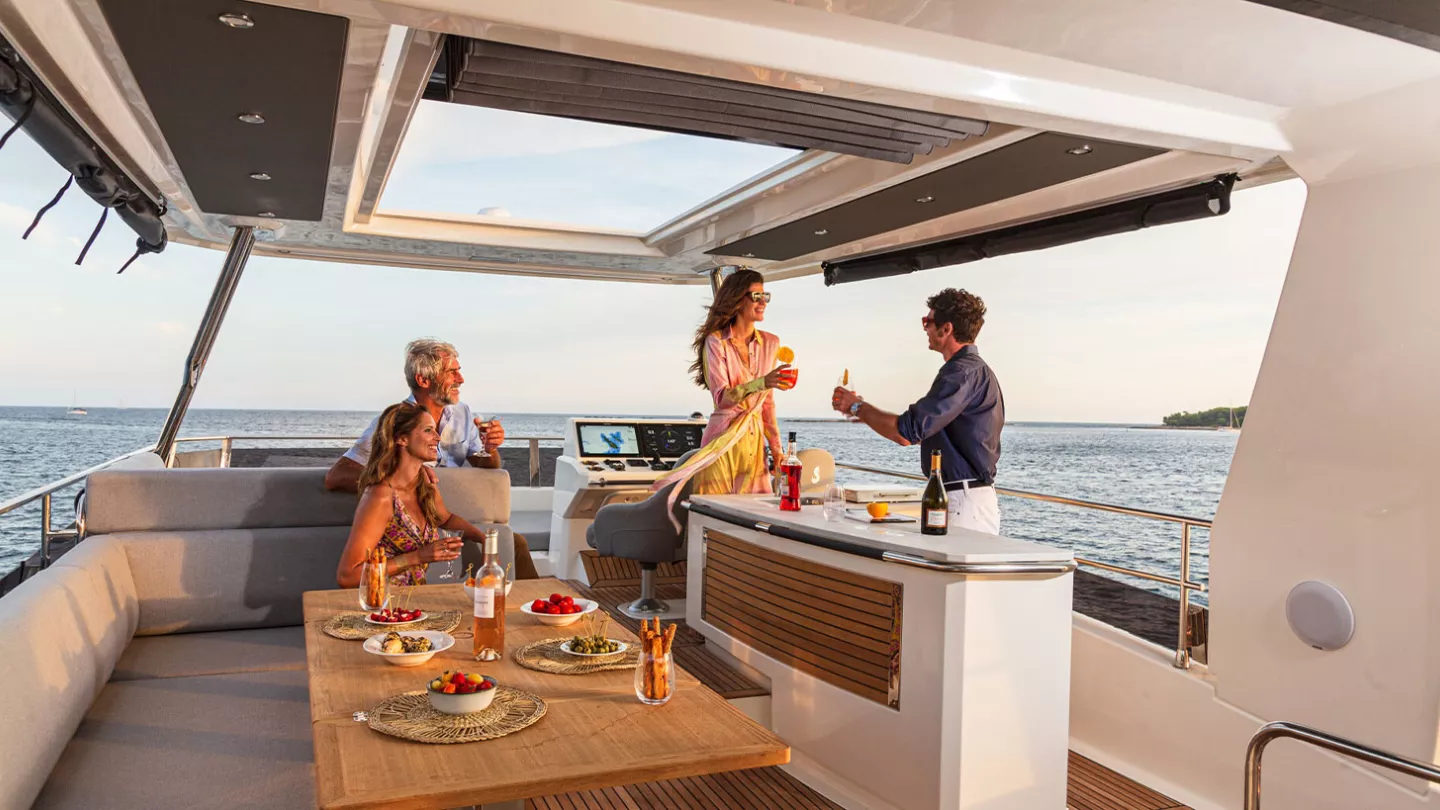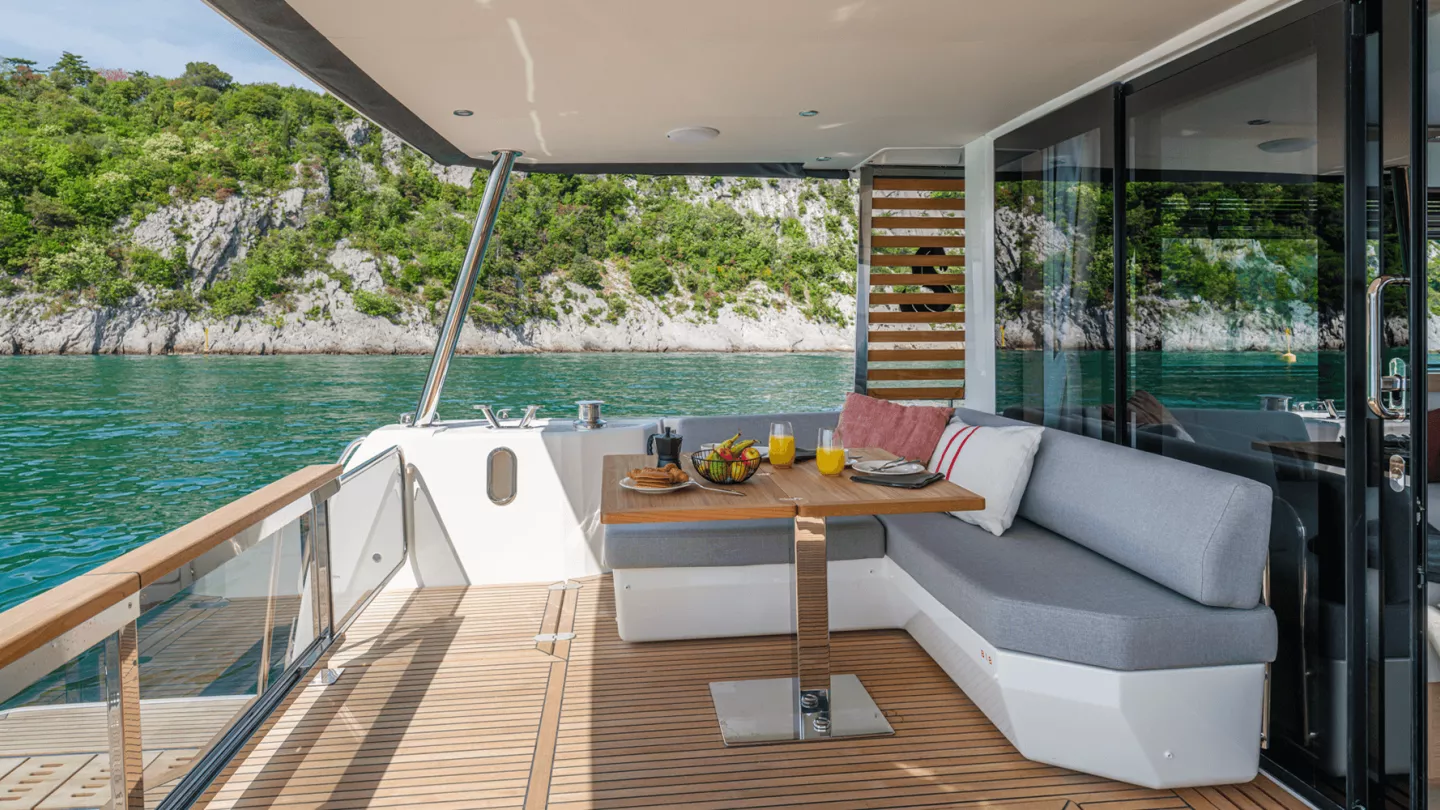 Functional elegance and minimalist decoration, simple and harmonious lines, the design is voluntarily open, creating an atmosphere of peaceful calm on board.