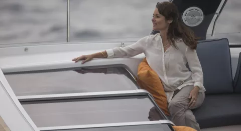 Unique in its size and ‘sun-lounger’ concept, the aft deck extends outdoor life to well beyond the two steering wheels. With integrated sun-loungers, it creates a space similar to a second cockpit.