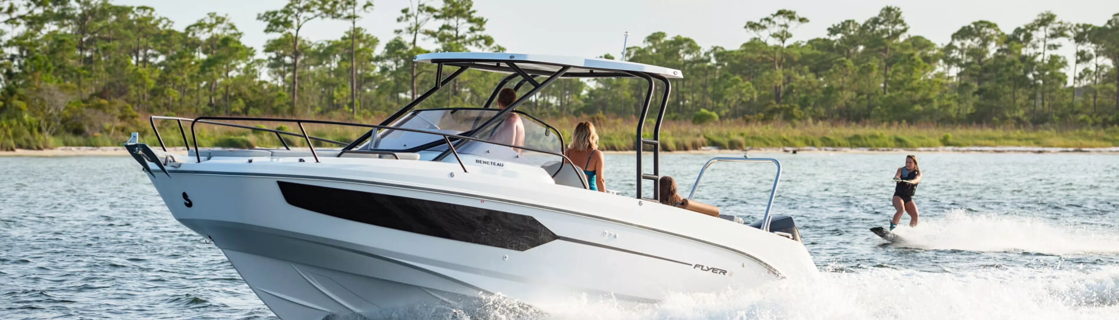 Elegante e confortável, o Flyer 8 SUNdeck exibe o caráter e a elegância que caracterizam esta nova geração de dayboats BENETEAU. Com ótima habitabilidade e vistas panorâmicas, beneficia de toda a expertise da BENETEAU em termos de instalações e acessórios. O anfitrião ideal para excursões de um dia, com uma cabine confortável e duas espreguiçadeiras, um excepcional tour de force para um motor de popa de 8 metros (quase 27').