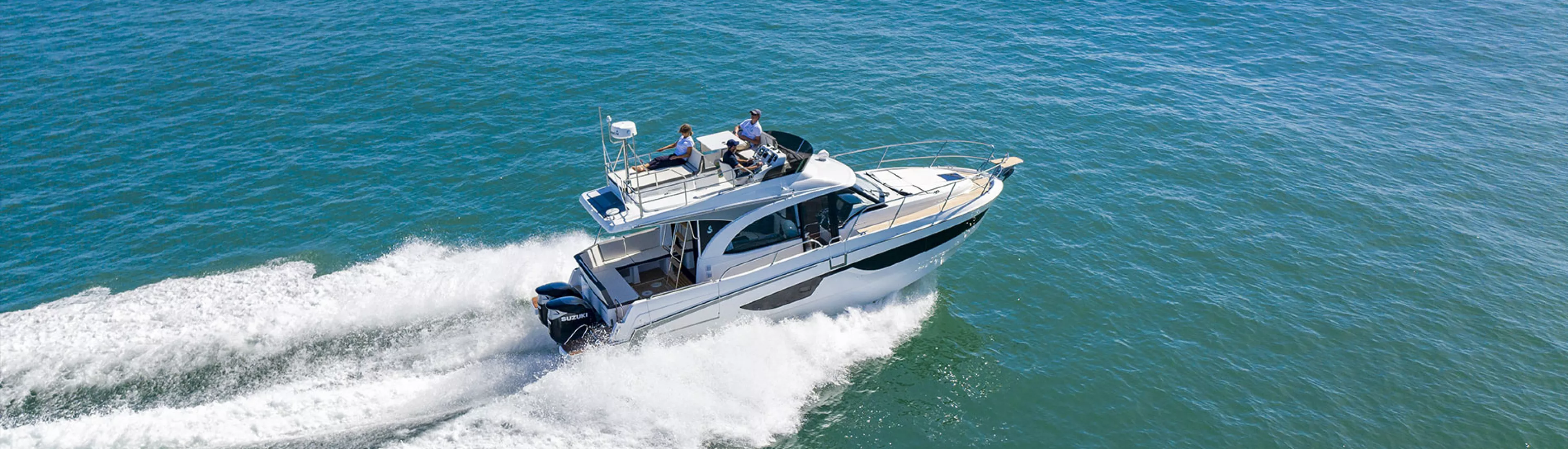 Flybridge, geniş güneşlenme minderleriyle birlikte ek bir kıç dinlenme alanına sahip. Bimini veya güneş paneli gibi seçenekler eklenebilir.